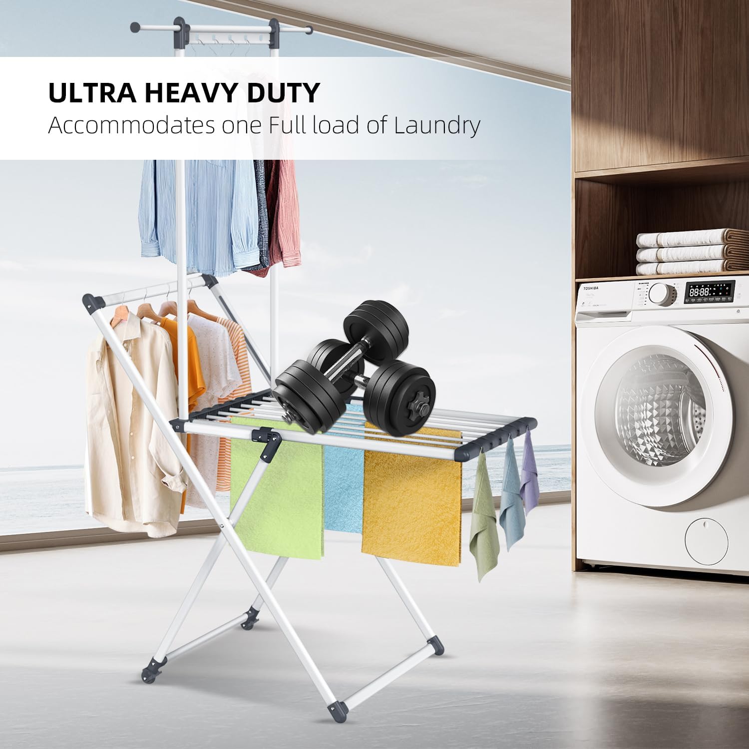 - Fast and Effortless Setup: No assembly required! This drying rack clothing foldable unfolds in just 1 second for immediate use. Perfect for quick laundry drying & your laundry room organization.