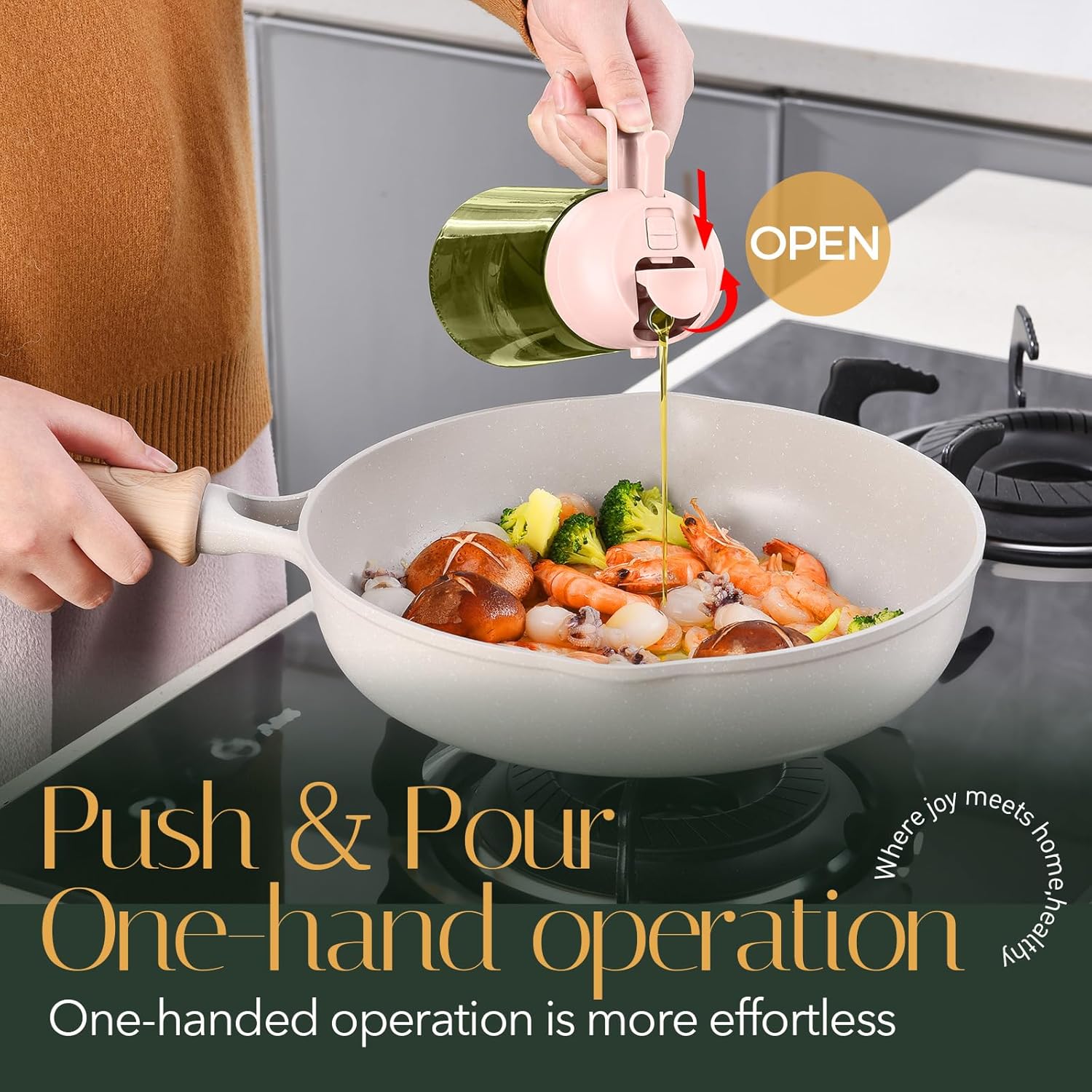 - 【Dual-Function Design & Multi-Purpose】: Oil mister spray bottle for cooking offers the convenience of both spraying and pouring oil, suitable for a wide range of food preparation processes such as salad dressing, griddle, roasting, grilling