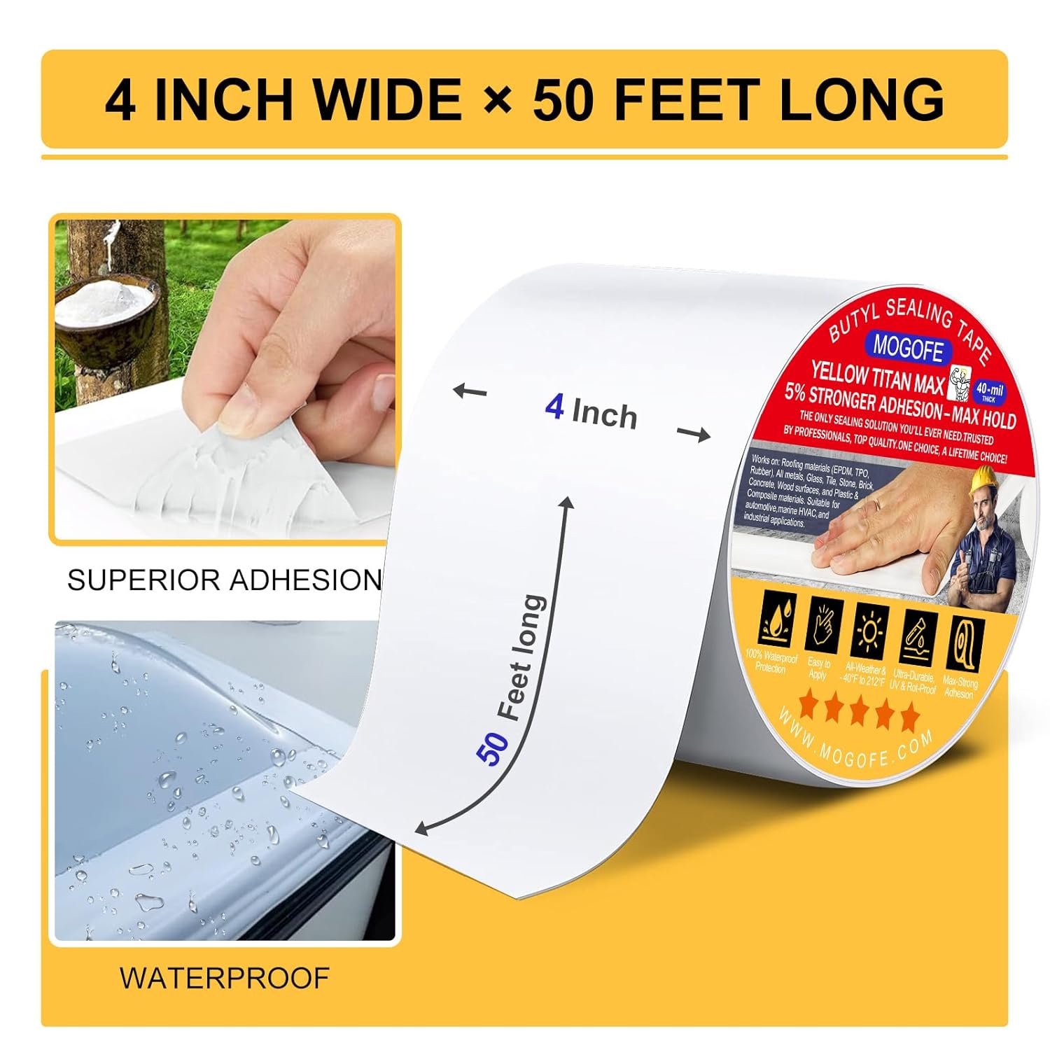 Max RV Roof Sealant Tape White - Extra Thick 4 Inch x 50 Feet, Triple Waterproof & UV-Resistant for RV Roof Repair, Camper, Trailer, Boat, Window & Leak Sealing