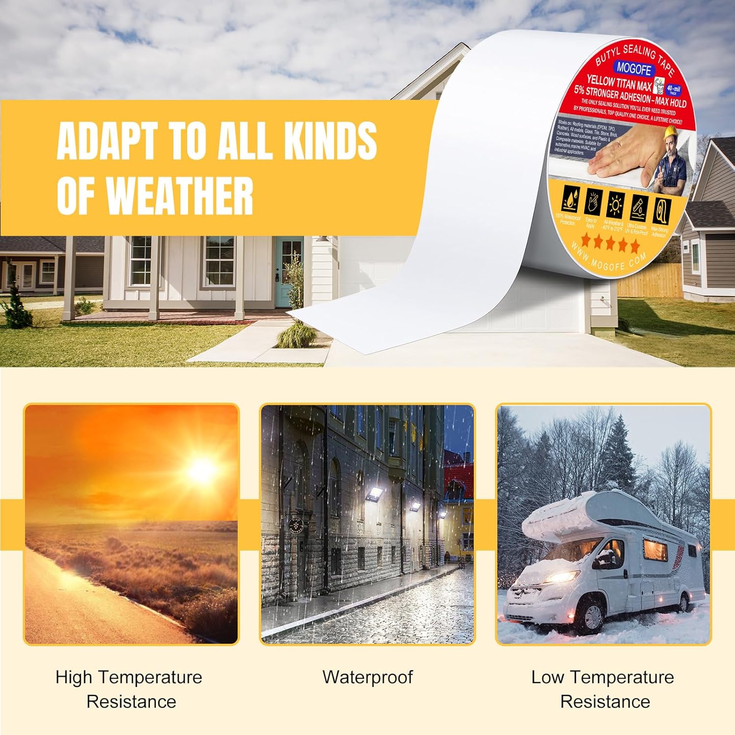 - EXTREME WEATHER READY β ALL-SEASON USE: Designed for extreme heat, freezing cold, and high humidity, this waterproof tape for outdoor use ensures reliable sealing in any climate.