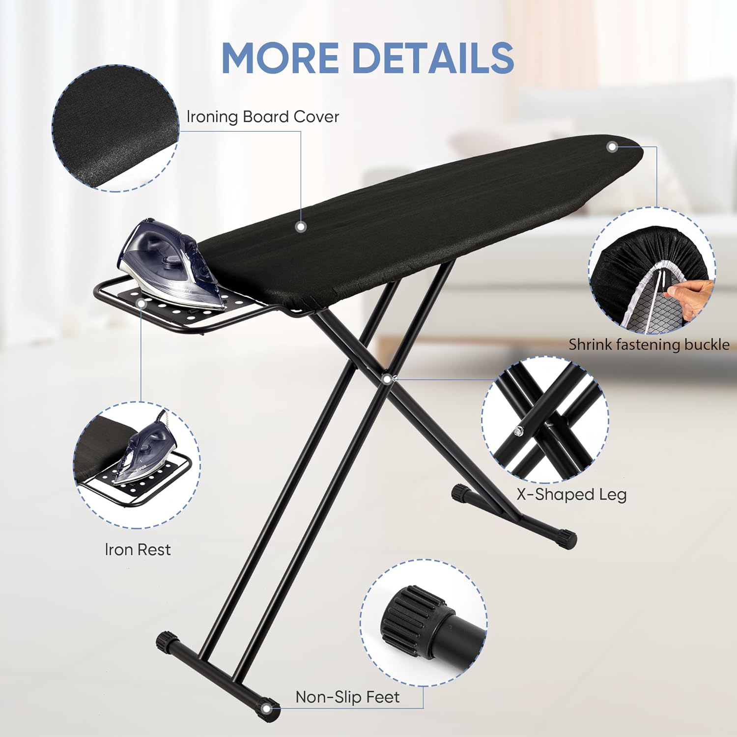 - SAFETY FEATURES: Built-in iron rest with protective holes for steam ventilation keeps hot iron secure while not in use