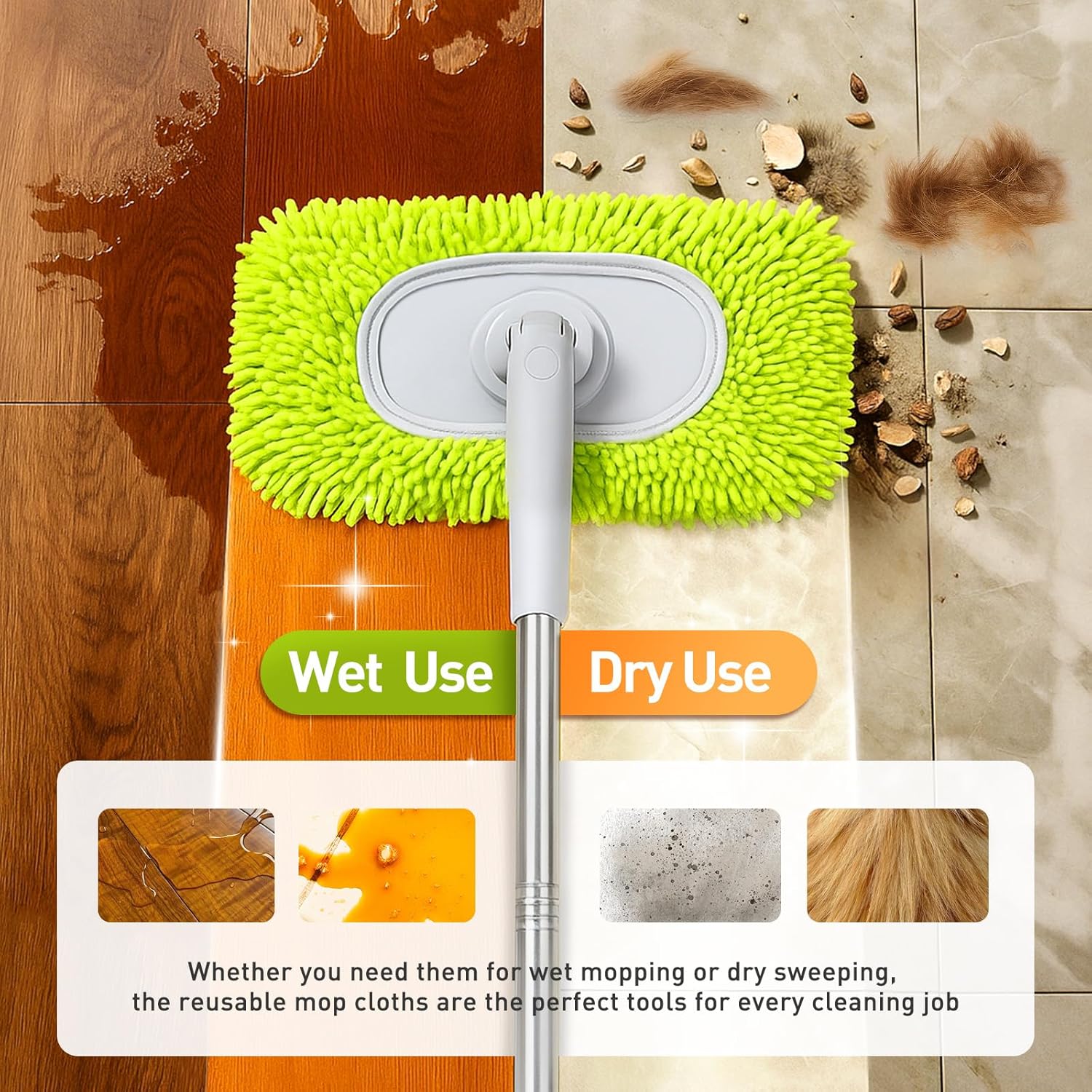 - REUSABLE MOP PADS: Tired of wasteful, flimsy mop pads? Discover our Chenille Mop Refill Pads. Whether you need them for wet mopping or dry sweeping, the reusable mop pads are the perfect tool for every cleaning job. (NOTE: Mop pole not included)