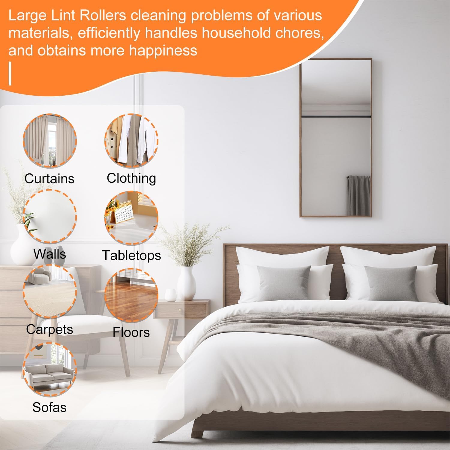 - 9.6-INCH WIDE DESIGN & 540-SHEET VALUE:Maximize cleaning coverage with our 9.6-inch wide adhesive roller. Its substantial width tackles expansive floors, carpets, and furniture effectively. Includes 6 refill rolls offering 540 extra-sticky sheets for extended use. Ideal for busy homes and pet owners managing shedding, this design helps reduce cleaning time. The generous refill quantity provides significant value by minimizing replacements.