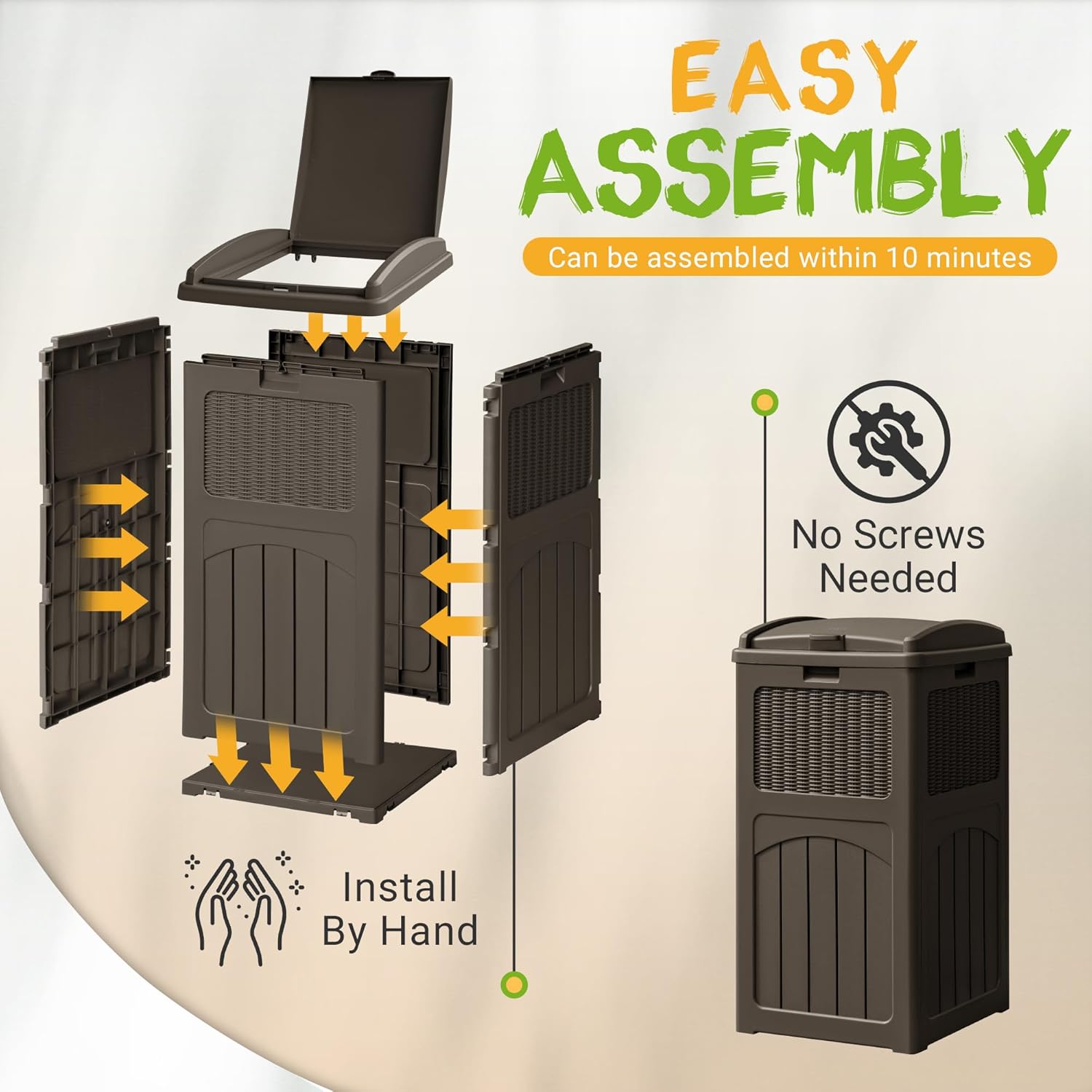 YESHOMY 4 Pack Outdoor Trash Can with Lid, Garbage Bins for Garden, Porch, Home and Kitchen, Brown