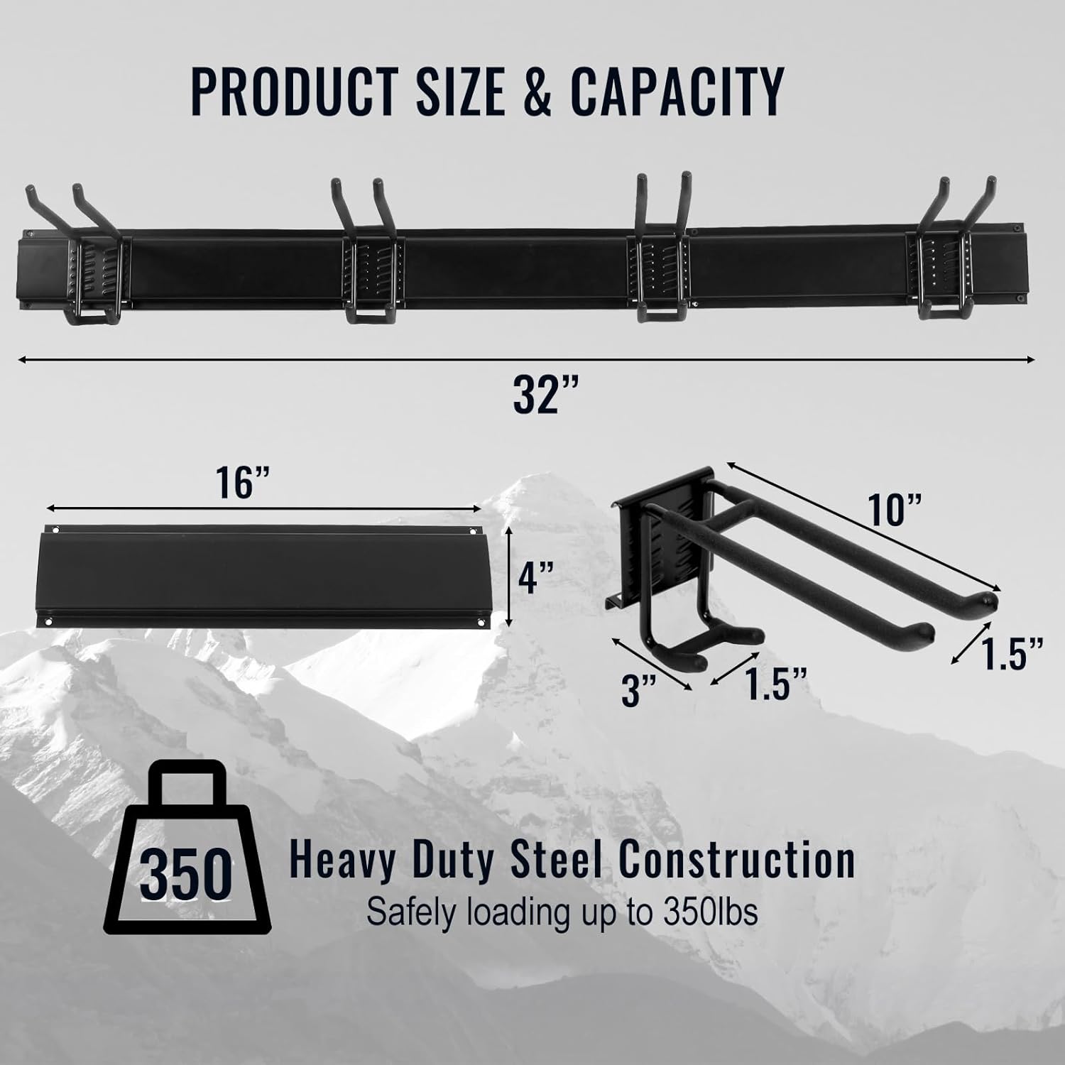 - EASY TO RELOCATER & ADJUSTABLE: The Garage Storage system with 3pcs Steel wall racks (16 inch), 6pcs Double Hooks (10 inch), Garage hooks can be easily repositioned anywhere on tracks of the panel when storage needs change. And fast wall-mount hooks can install in a snap.
