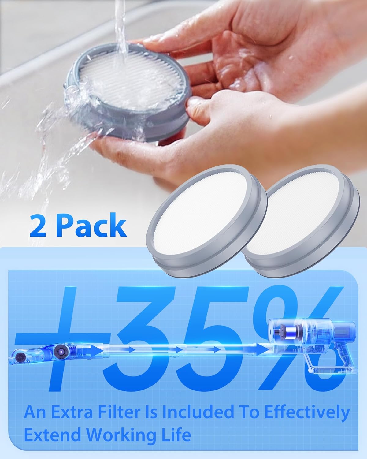 - 𝐀𝐧 𝐄𝐱𝐭𝐫𝐚 𝐅𝐢𝐥𝐭𝐞𝐫 𝐈𝐧𝐜𝐥𝐮𝐝𝐞 𝐟𝐨𝐫 𝐄𝐱𝐭𝐞𝐧𝐝𝐢𝐧𝐠 𝐌𝐚𝐜𝐡𝐢𝐧𝐞'𝐬 𝐋𝐢𝐟𝐞𝐬𝐩𝐚𝐧 - The W750 vacuum's HEPA filter is removable & washable (recommended repacement every 3 months based on usage). An extra replacement filter is included – extending your vacuum's lifespan by at least 35% for long-lasting cleaning power.