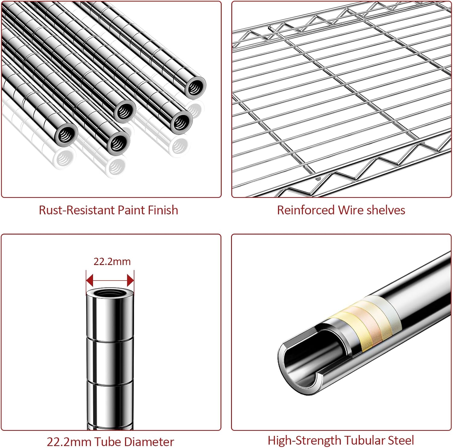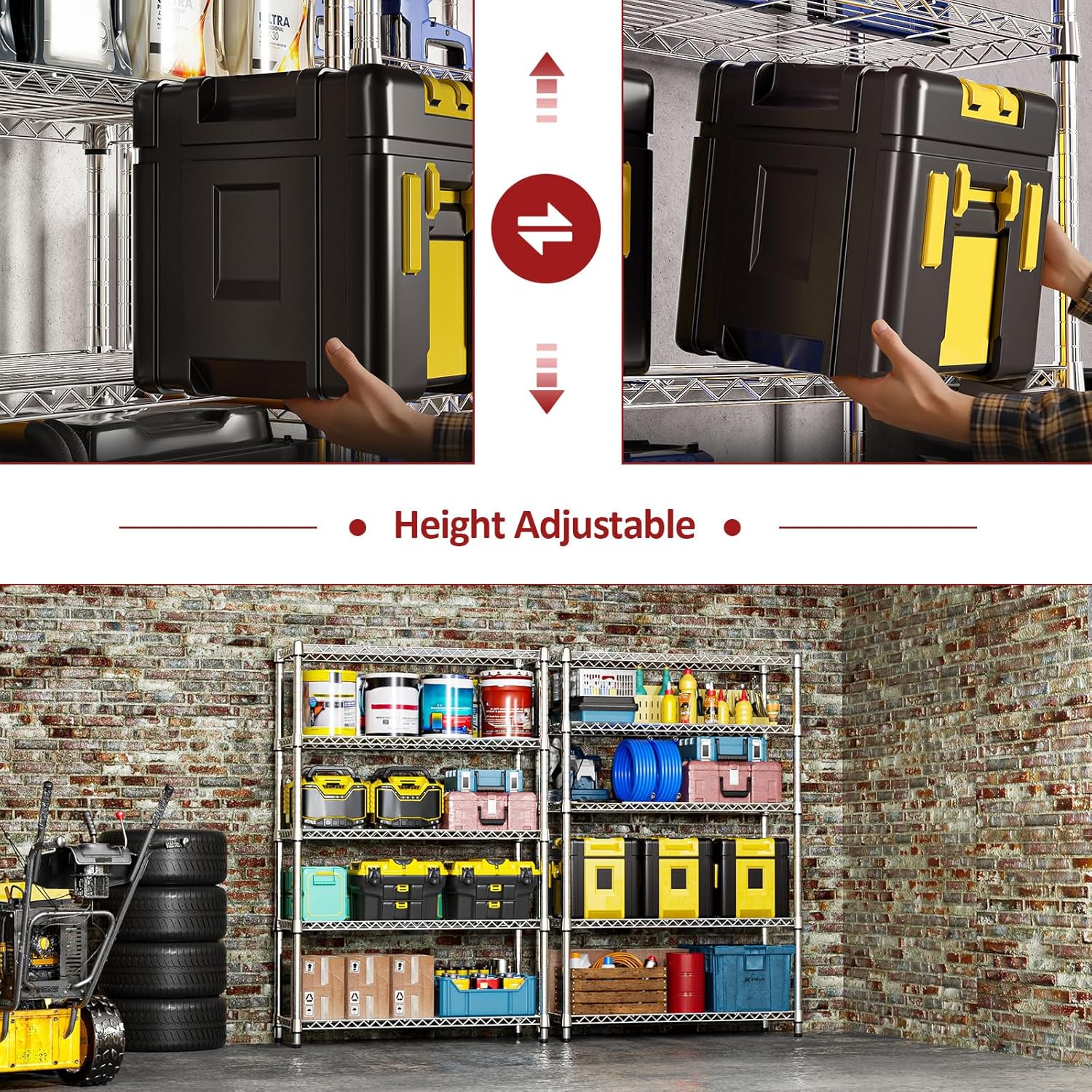 IZEUK 1750LBS Garage Shelving Wide Storage Shelves 5 Tier Metal Shelves Heavy Duty Adjustable Utility Shelf Rack (Chrome, 5 Tier, 15.7" D x 45.3" W x 70.9" H)