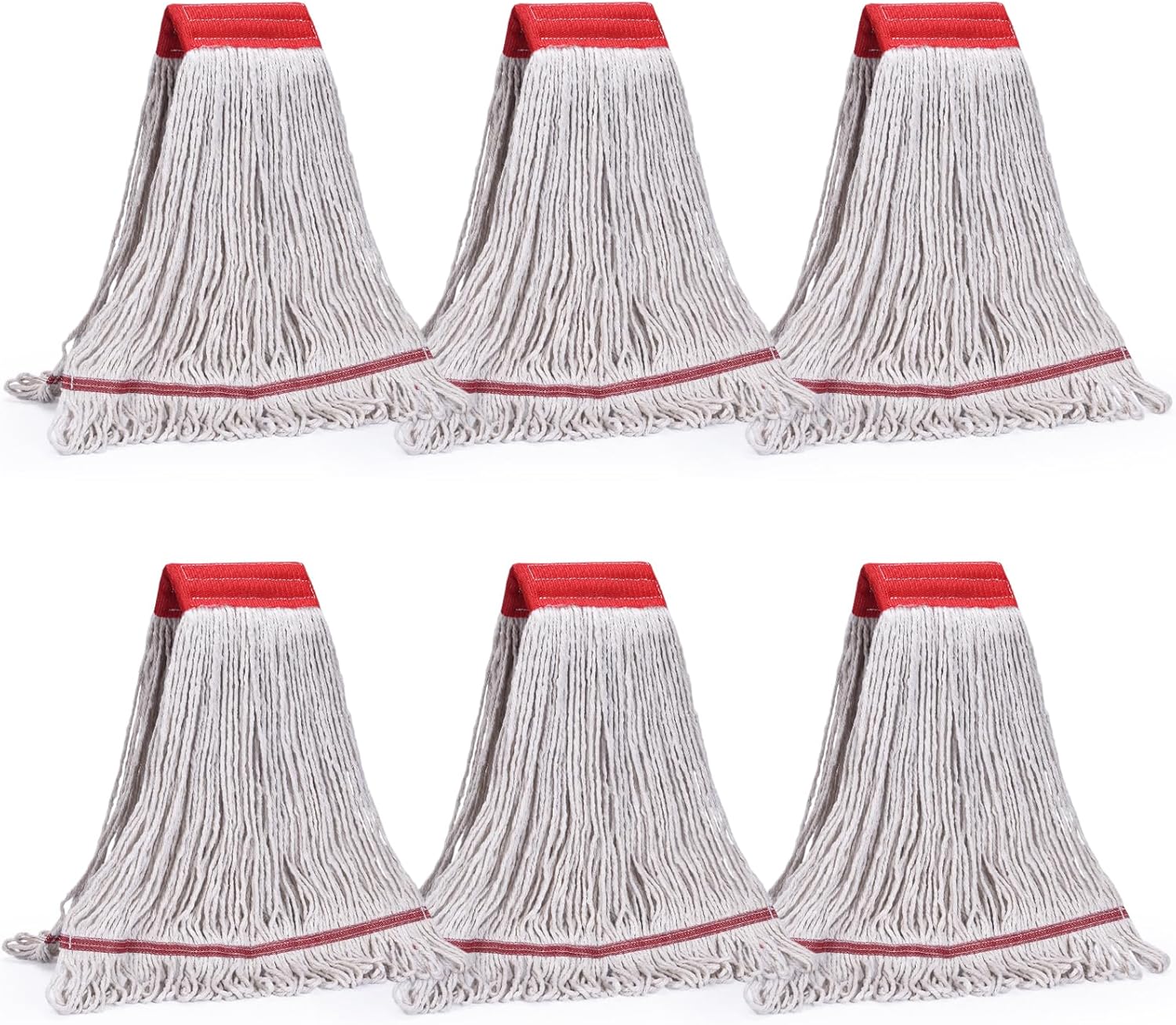 Matthew Cleaning Commercial Mop Head Replacement, 5 Inch Wide Headband, Looped End Cotton Blend String Wet Mops for Floor Cleaning, 18 oz Medium, 6-Pack White