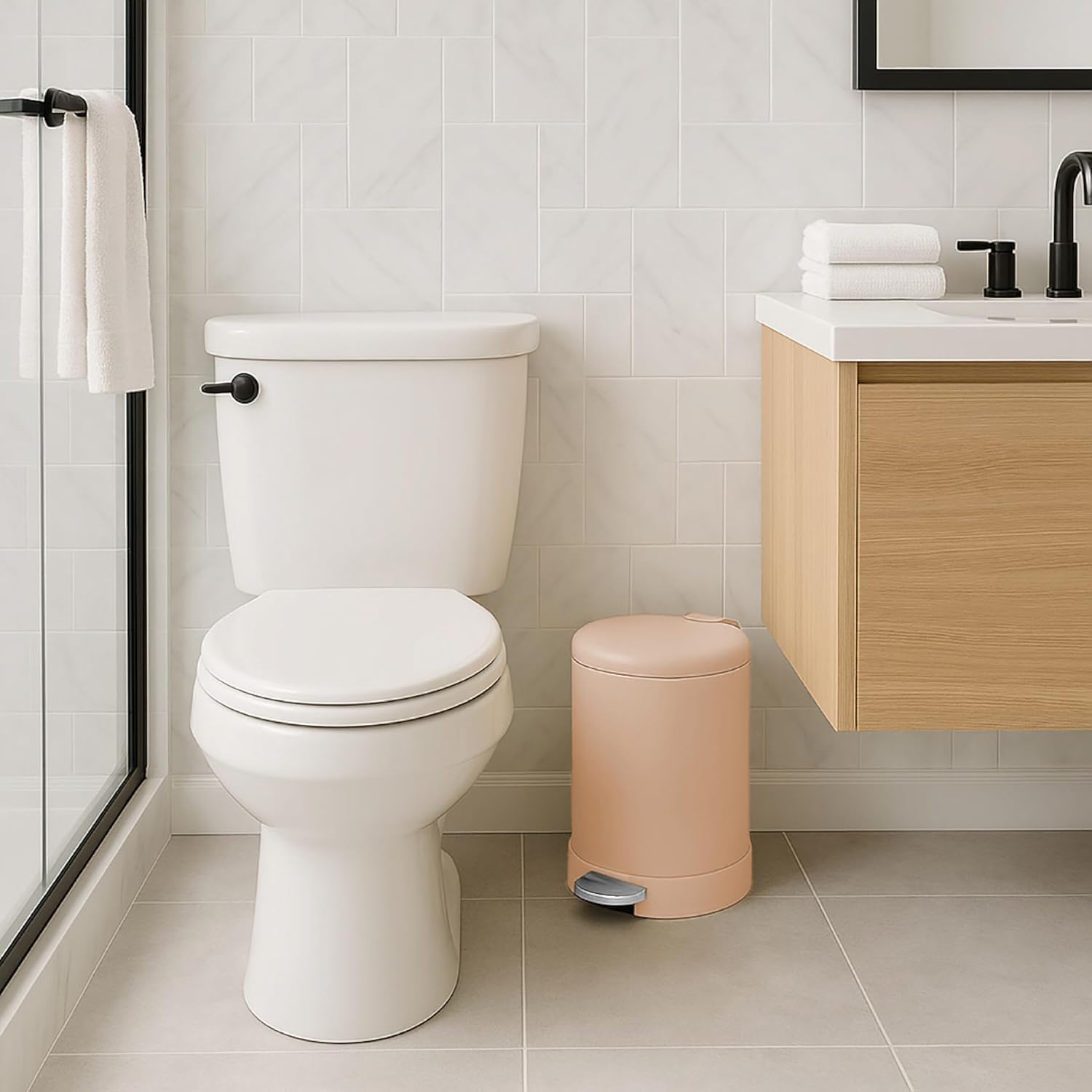 - SMALL TRASH CAN WITH LID - The 1.2-gallon capacity makes this compact trash can the perfect size for rooms with limited space. Makes a great office trash can for near desk, lidded bathroom wastebasket, and tiny step can for apartment kitchens.