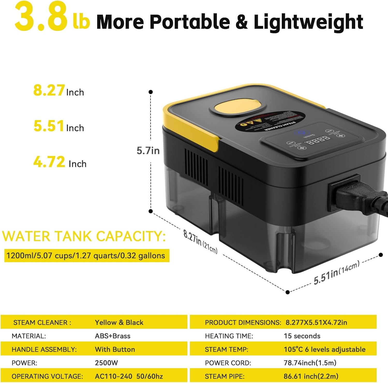 - 【Professional-Grade Steam Cleaner—Fast Heating with Smart Safety Features】 With 2500W of power, this steamer heats up in just 10 seconds and delivers high-pressure 221°F (105°C) steam to deep clean everything from floors to kitchen grease—no harsh chemicals needed. Set the built-in 30-minute timer for focused cleaning sessions, and don’t worry—it automatically shuts off if water runs low or time’s up