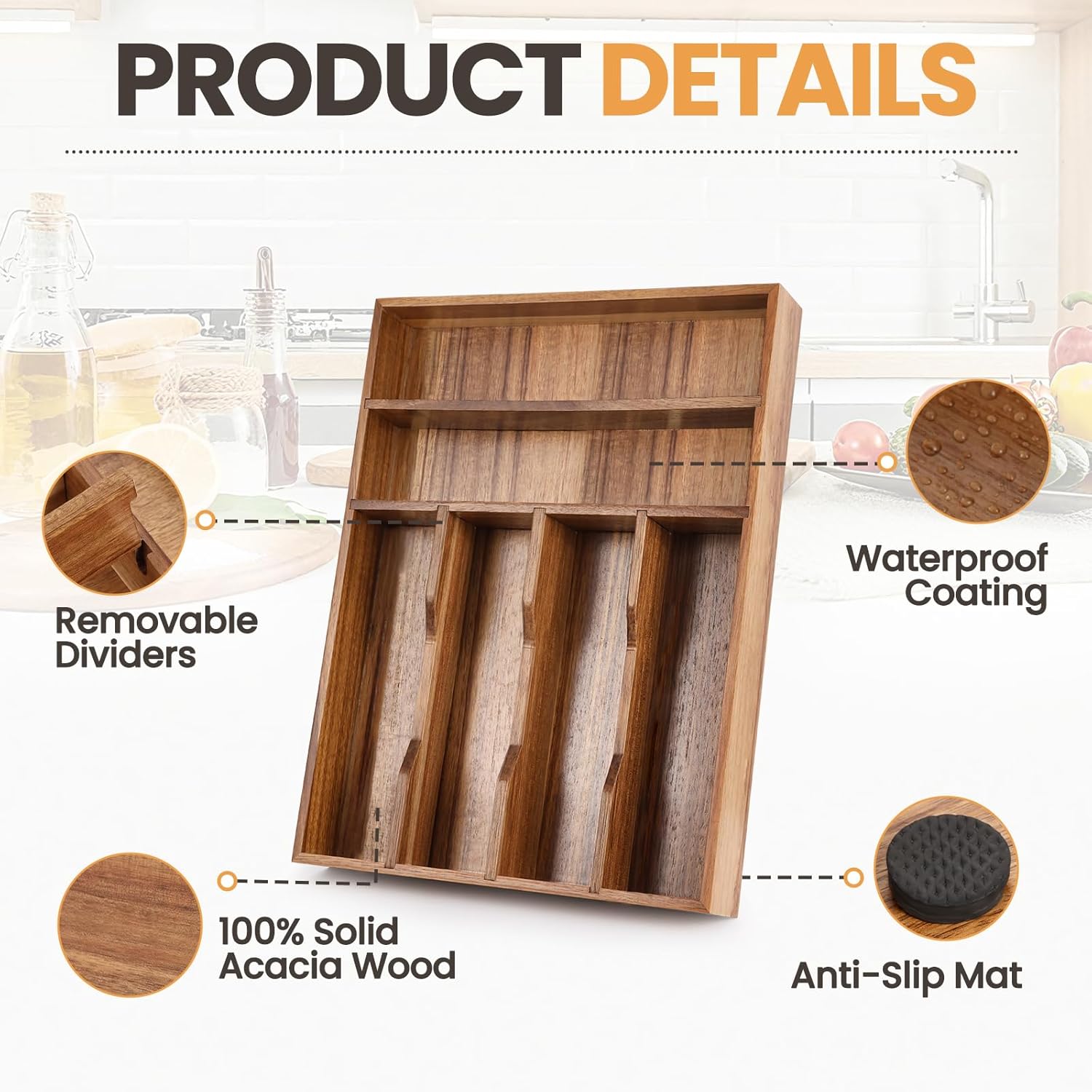 - Stylish and Functional: Enhance your kitchen decor with the exquisite appearance of natural acacia wood, seamlessly integrating functionality and elegance to meet your kitchen drawer sorting and storage needs