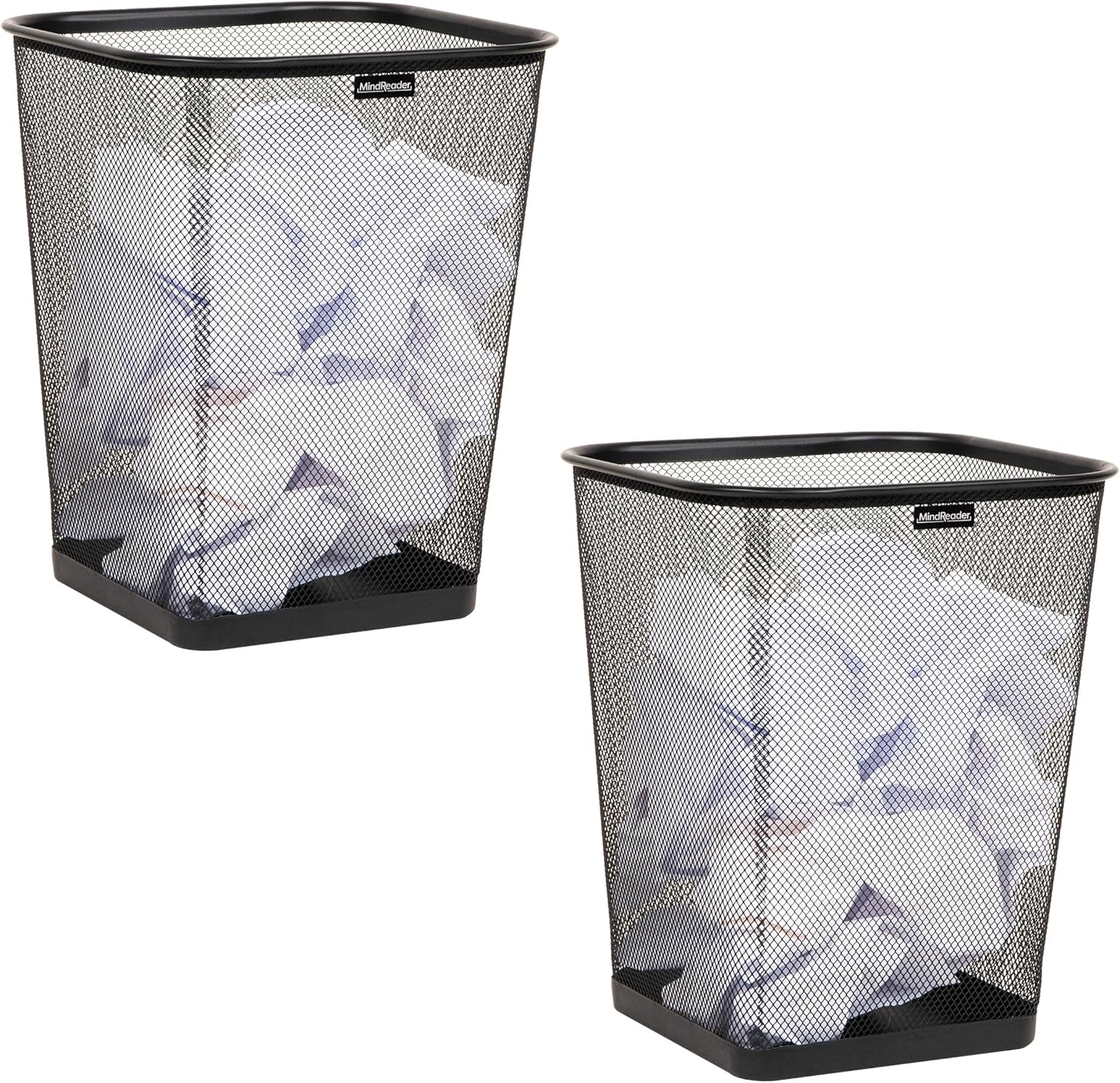 Mind Reader Mesh Trash Can, Waste Paper Basket, Square, Office, Metal Mesh, Set of 2, Black