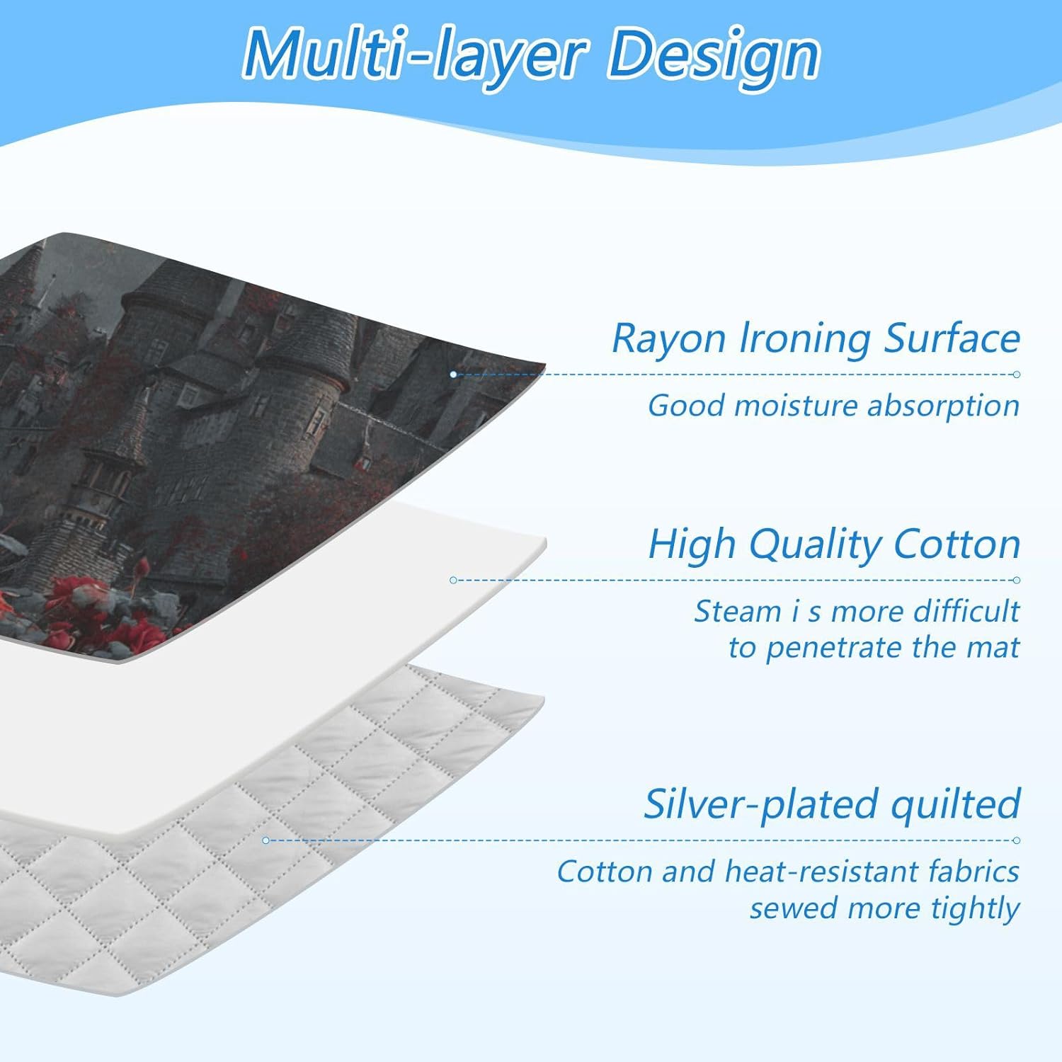 Castle Bats Rose Halloween Ironing Mat for Table top Portable Ironing Pad Blanket for Washer Dryer Countertop Travel