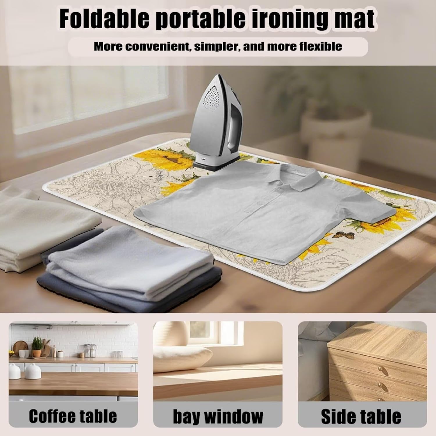 - 【Foldable】: Say goodbye to bulky ironing boards! This lightweight mat folds flat to the size of a magazine, making it ideal for studio apartments, dorm rooms, RVs, or tiny homes. Use it on any sturdy surface—kitchen tables, dressers, or even the bed—and store it in a closet, drawer, or under the bed when not in use