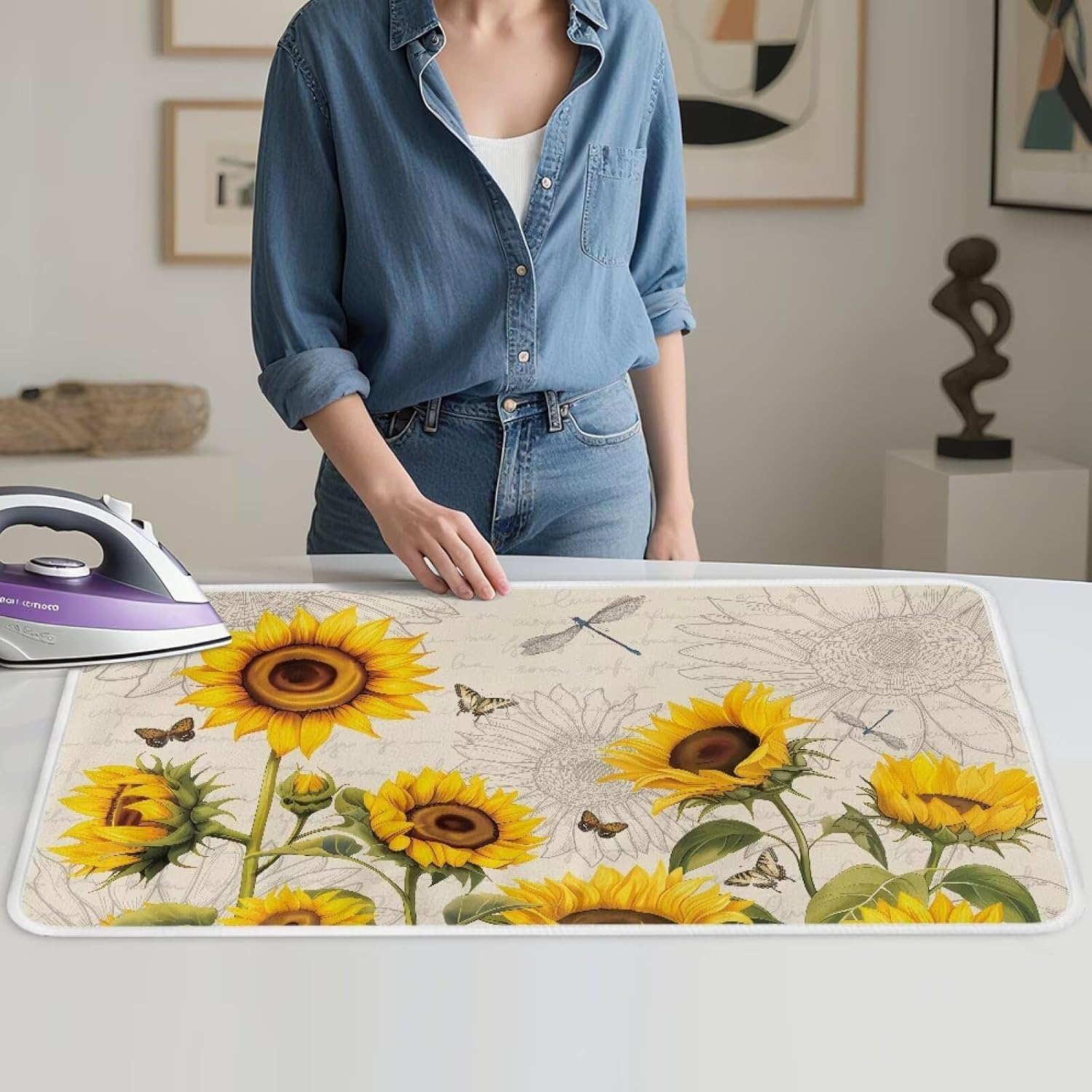 Sunflower Ironing Mat Pad for Table Portable Travel Iron Blanket Vintage Ironing Board Covers Tribal Pressing Mat Heat Press Pads 32x16 Inches,Yellow