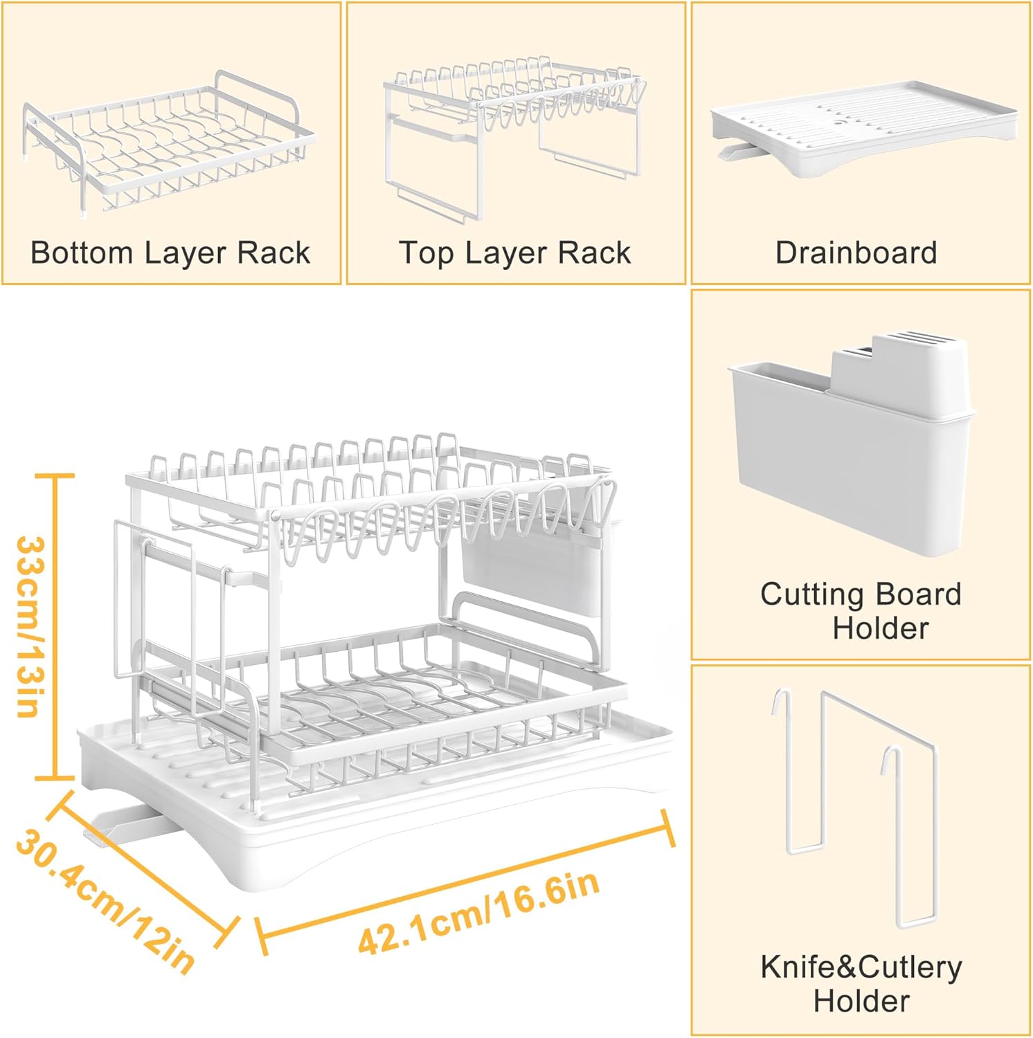 - MULTIPURPOSE DISH RACK: Storvive2 tier dish drying rack with multiple accessories. They can efficiently help you to store diverse kitchenware. Storvive dishes drying rack can meet all your needs for storing and drying kitchenware.