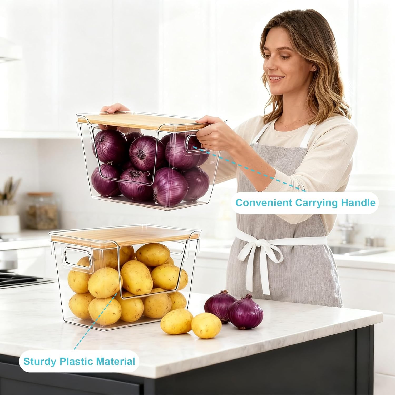 - Clear Visibility and Easy Access: The transparent body provides easy visibility of contents, allowing you to see what you need at a glance and know when itβs time to restock. The wide front opening ensures smooth dispensing of trash bags or grabbing of produce like potatoes and onions, bringing convenience to your daily routine