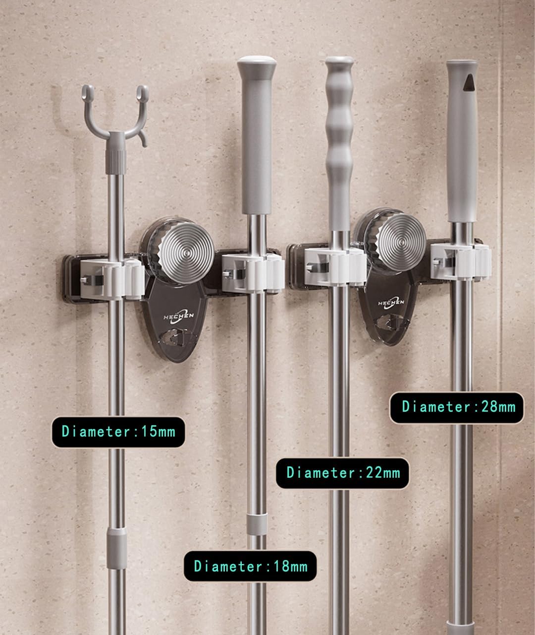 - Anti Slip Sesign: Anti slip roller clip, firmly clamped and not easy to fall off, easy to pick up and put with one hand, suitable for organizing the handle size of most cleaning supplies, with a maximum diameter of 1.2 inches, such as mops, brooms, rakes, shovels and other tools