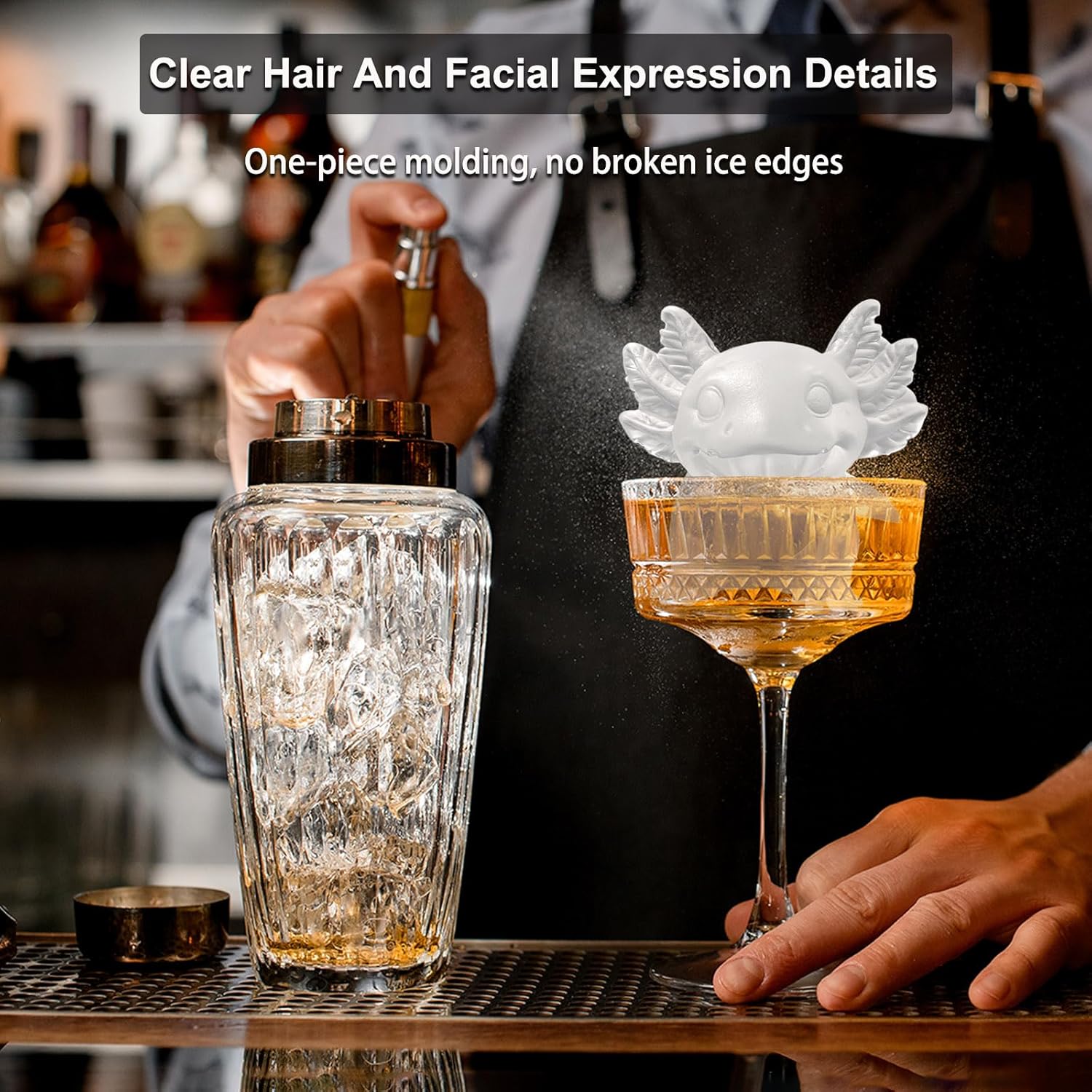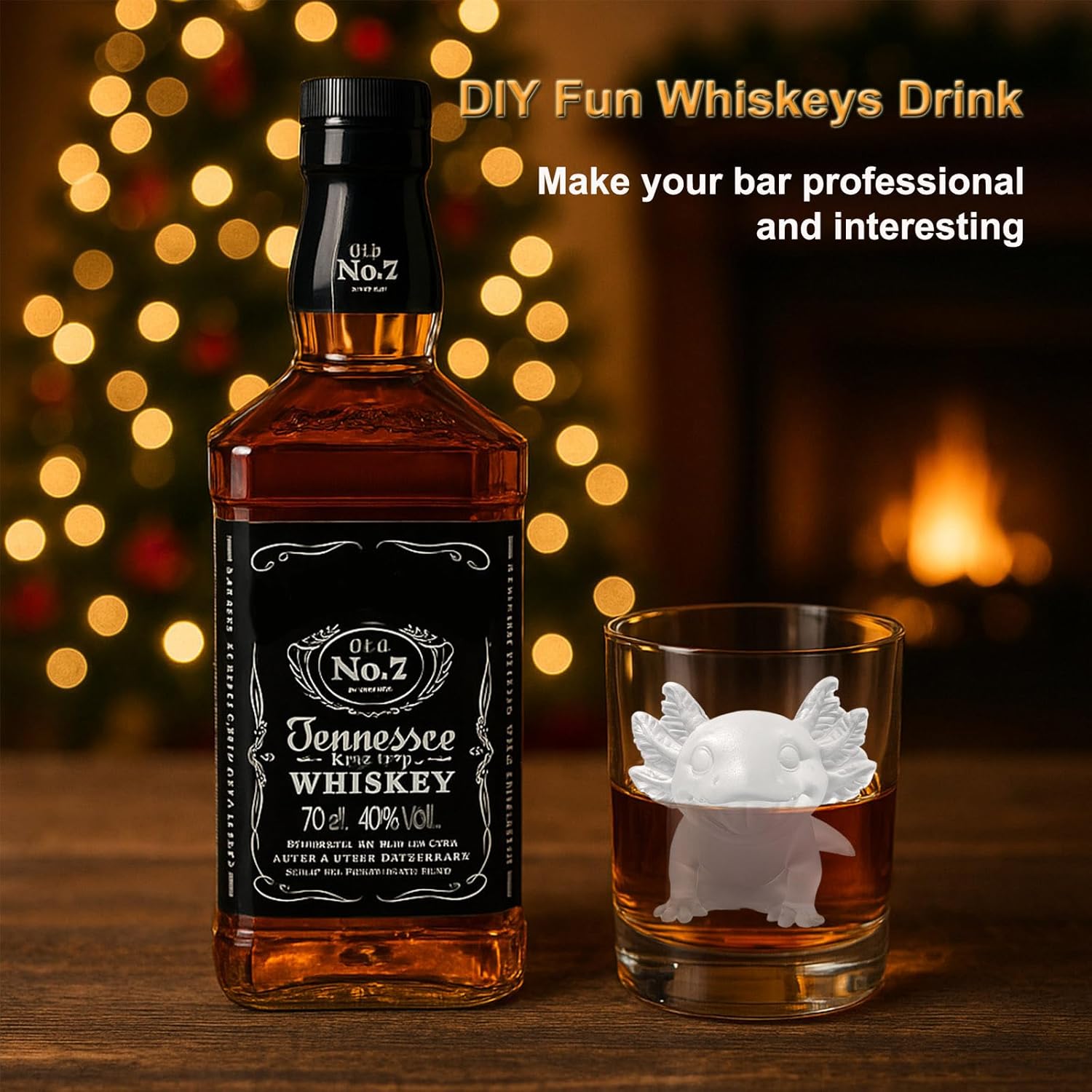 - 🧊Fun Axolotl Shaped Ice Cube Mold -- Our Ice Cube Mold can make cute Axolotl shaped ice cubes; it has a large size and is designed for whiskey glasses, which is very suitable for drinks that need to melt slowly, such as whiskey, cocktails, bourbon, rum, tequila, gin, etc.