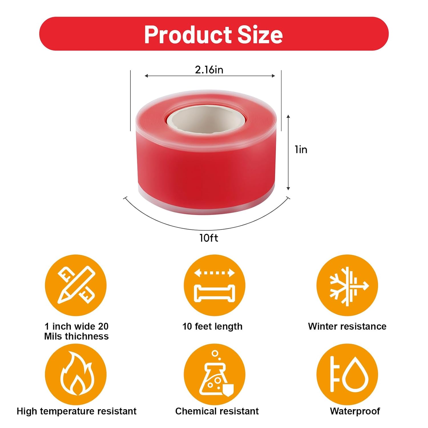 Self Fusing Silicone Tape 4 Rolls 1 in x 10' Red Waterproof Rescue Tape Rubber Leak Silicone Self-amalgamating Tape for Plumbing, Sealing Pipes, Hose Repair, Outdoor Coax and Tool Fixation