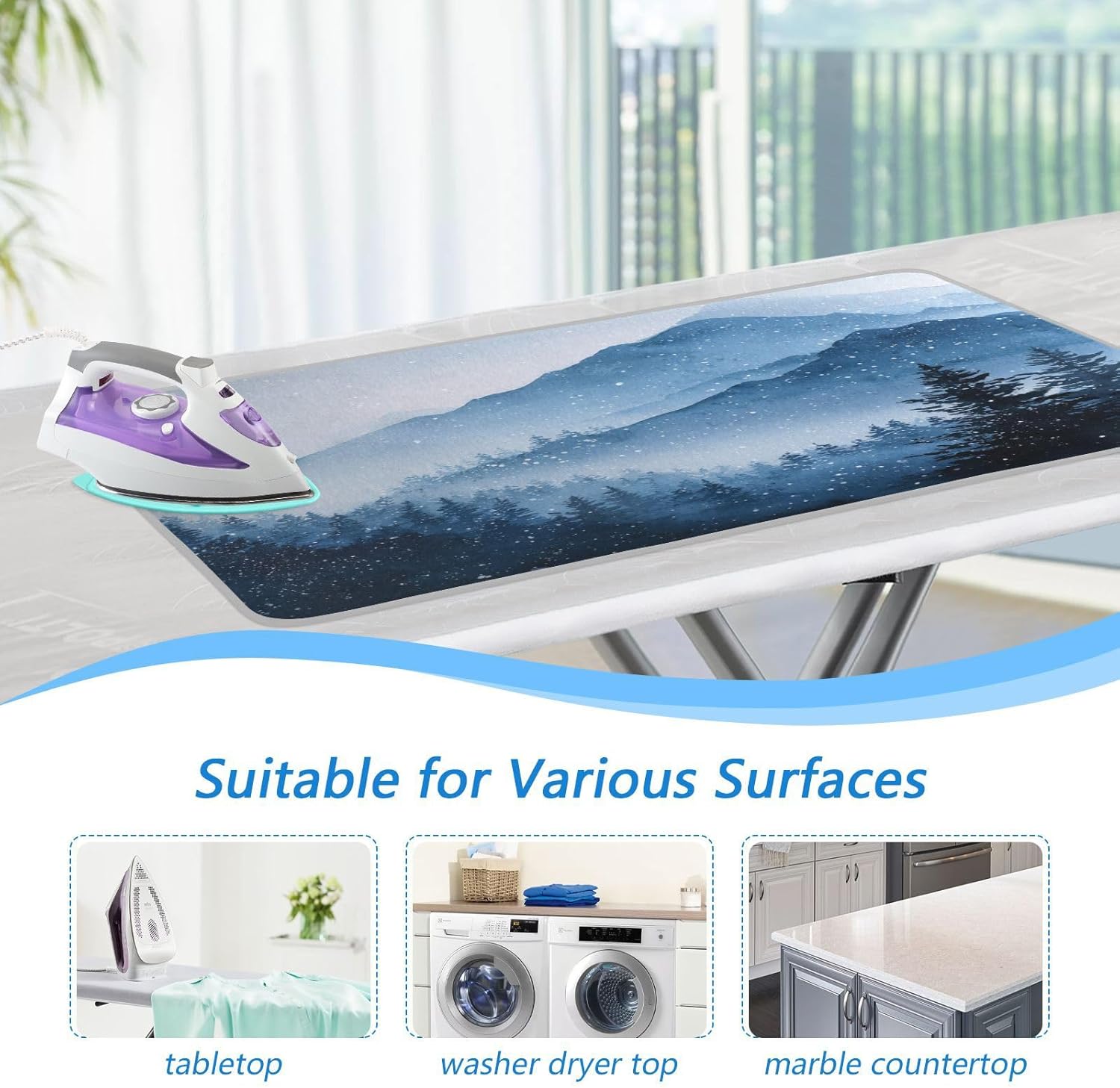 - Multifunctional Use: The ironing pad for table can also be used as a heat-resistant cover mat for your washer, dryer or any other countertop, ensuring that surfaces are protected from dirt, scratches and other minor surface damage