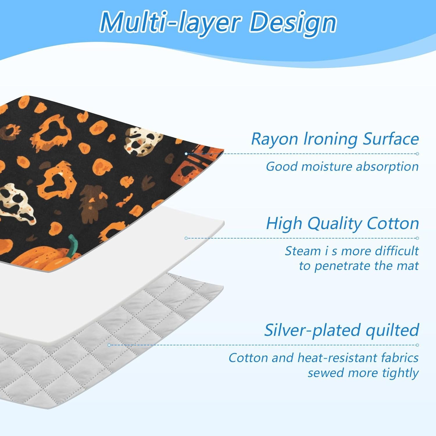 Ironing Mat Portable Ironing Pad Ironing Blanket for Table Top Heat Resistance Double-Side Using Travel Large 47.2 x 27.6 Inch Foldable Halloween Leopard Pumpkin Skull Brown
