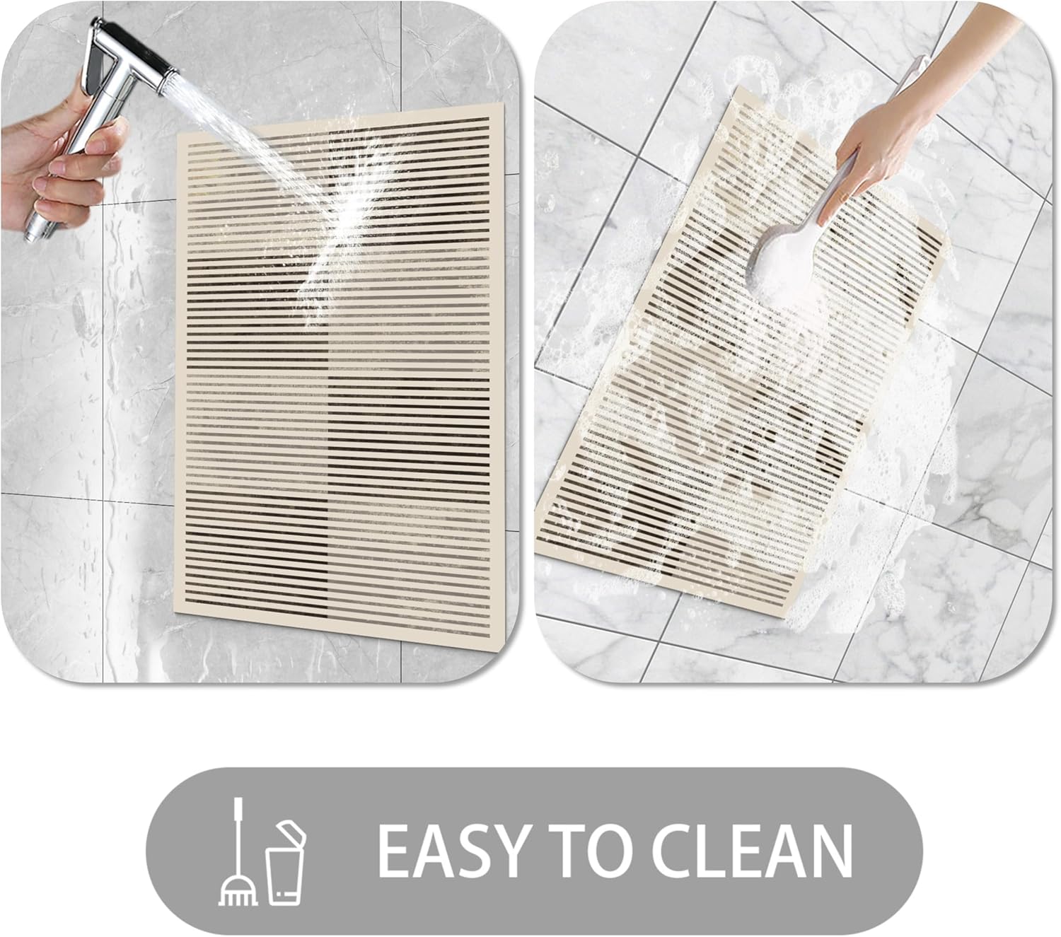 - 【Absorbent & Quick-Dry】Crafted with diatomaceous earth, this mat can absorb up to 1.9 gallons of water per square yard, making it perfect for high-moisture areas like bathrooms. Use it as an entrance mat to protect your floors from water damage, dirt, and debris, ensuring a clean and dry living space