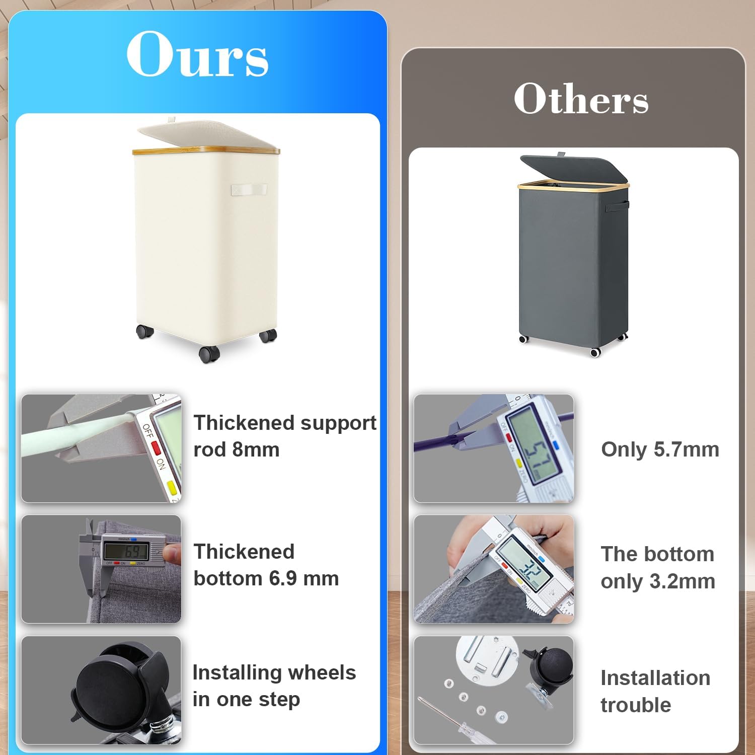 - β 4-Wheel Design with Brakes & Handles:Smooth-rolling wheels (2 lockable brakes) + dual handles let you move 80 lbs of laundry effortlessly, even on carpets.