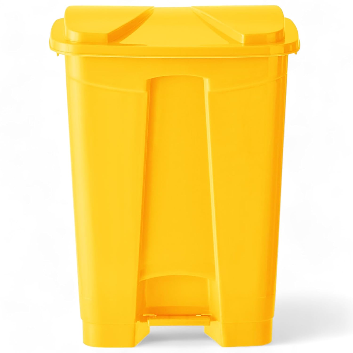 PRO&Family Step-On Trash Can with Lid, Plastic Waste Bin, Foot Pedal Operation (Yellow, 4 Gallon)