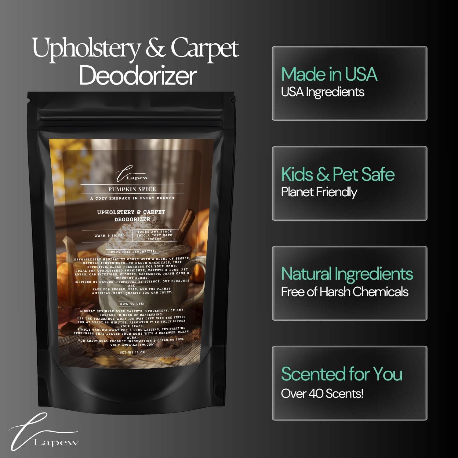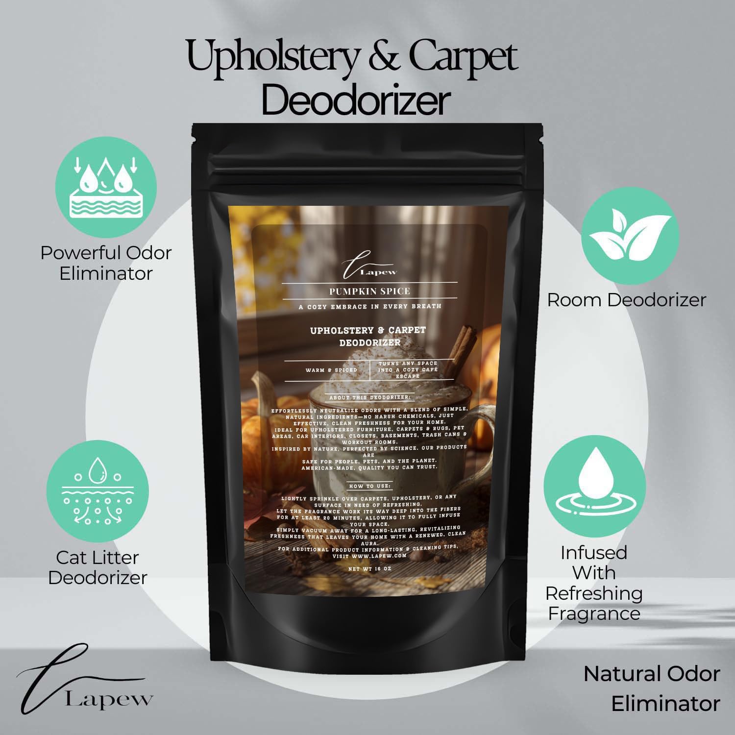 - Powerful Odor Eliminator for Strong Odors: Say goodbye to stubborn smells with the Lapew Pumpkin Spice Carpet Freshener Powder, specially formulated to tackle everyday room odors.