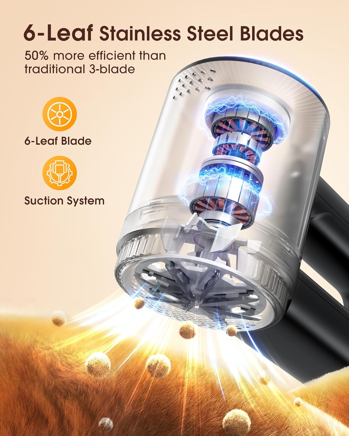 - 【Innovative Upgraded 6 Leaf Blades】lint remover fabric pilling remover upgraded 6 Leaf Blades, razor-sharp, double cleaning efficiency compared to the 3-blade cutter head, with 3 speeds suction system to cater to different fabric shaver for clothing