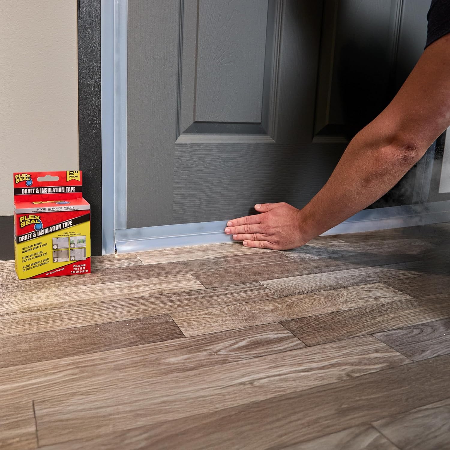 Flex Seal Draft and Insulation Sealing Tape, Flexible, Rubberized, Weatherproof Strip for Windows, Doors, Vents, Works on Wood, Glass, Tile, Metal, Plastic, Fiberglass, Clear, 2 in x 16 ft, Pack of 1